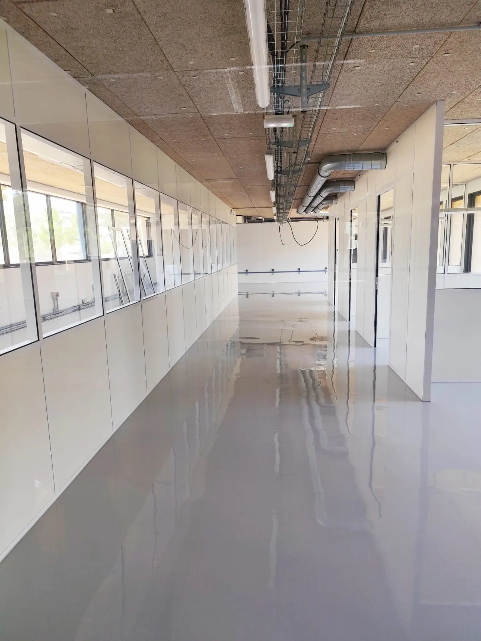 Pose d’un revêtement en résine époxy sur le sol d’un domaine viticole à Bandol